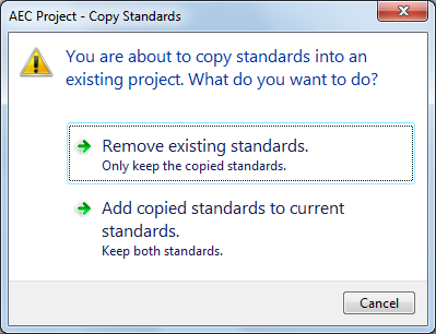 When you copy the standards of an existing project to a new project, standards drawings can be either referenced from their original location in the new project, or be copied to the new project.
