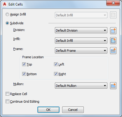 select a mullion definition for the grid created after the cell is subdivided | select the mullion definition. |