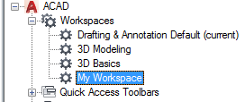 - In the Customize tab, Customizations In <file name> pane, click the plus sign (+) next to the Workspaces node to expand it.