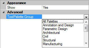 - In the ToolPalette Group box, select one of the listed tool palette groups to associate it with the ribbon tab.
