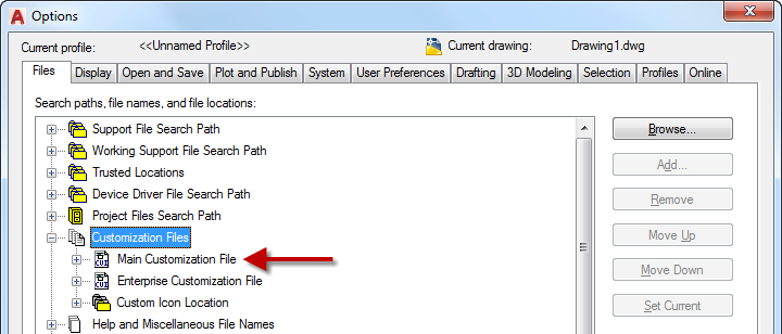 Customization (CUI/CUIx) files define user interface elements such as the Quick Access toolbar (QAT), ribbon panels and tabs, palettes, “classic” toolbars, and pull-down menus. Based on the previous release from which you are migrating, the Migrate Custom Settings utility looks for the CUI or CUIx file specified by the Main Customization File setting. The main customization file is migrated in addition to the partial customization files loaded in the main CUI/CUIx file.