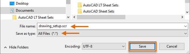 5. In the File Name text box, select the default text and type drawing_setup.scr.