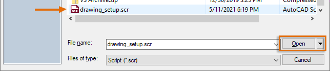 3. In the Select Script File dialog box, browse to and select the drawing_setup.scr file.