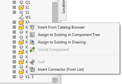 In the Location View tab, right-click the Inventor part and click Insert Connector (From List).