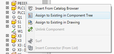 In the component tree view, select the electrical component you want to link with the Inventor part. The component tree view is automatically refreshed to show the linked component.