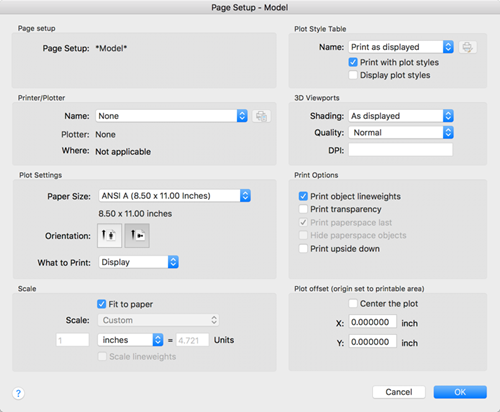 The page setup settings that you specify are stored with the layout and can be applied to other layouts or imported into other drawings.