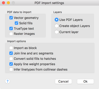 - Creates AutoCAD layers from the layers stored in the PDF file, and applies them to the imported objects. The layer names have a PDF prefix. If no layers are present in the PDF file, object layers are created instead.