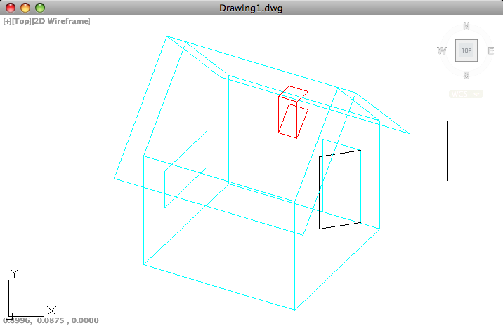 If you press Enter at the Select Objects prompt, DVIEWBLOCK displays a preview image. You can create your own DVIEWBLOCK block in a 1 unit by 1 unit by 1 unit area, with its origin at the lower-left corner. The following illustration shows an example of using the default DVIEWBLOCK to set the view (moving the graphics cursor adjusts the view).