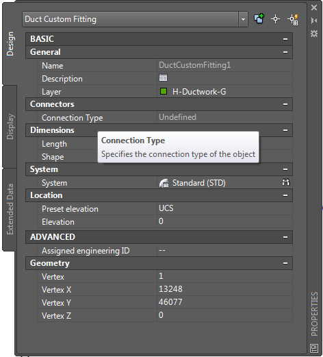 The Properties palette displays tooltips when you hover the cursor over a property in the list.