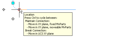 Objects in AutoCAD MEP have grips to manipulate them. Each grip has a tooltip that displays the function of the grip.