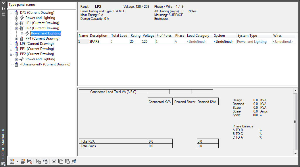 Use the Circuit Manager to view circuit data and information for electrical system drawings. If you use an electrical project database, you can view circuit data in any linked drawing. If you do not use an electrical project database, you can view circuit data in the current drawing.