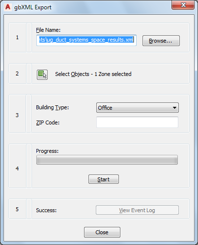 After you create spaces and group them into zones, you can export the information to a file in the Green Building XML (gbXML) format as follows.