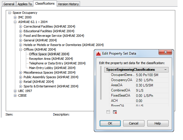 Expand the classifications under Space Occupancy, and select the space type you want to view.