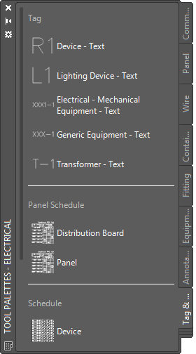 - In the Electrical tool palettes set, click the Tag and Schedule palette.