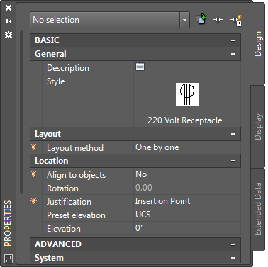 Tip: To facilitate annotation and scheduling, you can use the properties of device tools to specify property sets and tags, so they are automatically attached to devices when they are added to drawings. A property set is a user-defined group of related properties, such as a part number or a manufacturer’s name. A tag is a symbol that can display the data in a property set attached to an object. For more information on annotation and scheduling, see Creating Construction Documents.