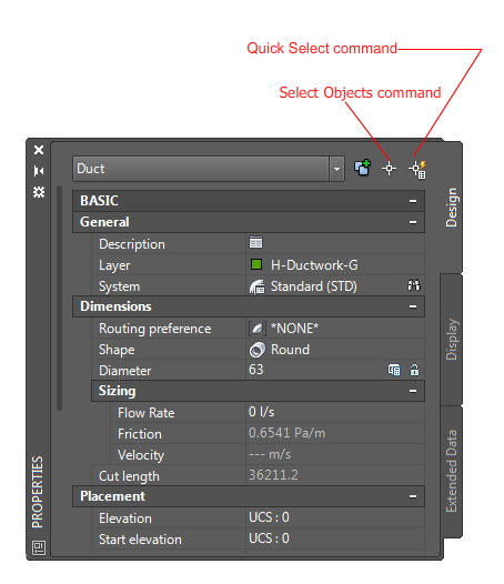 select the objects in a domain, such as, in the Duct domain, duct segments, fittings, or flex duct