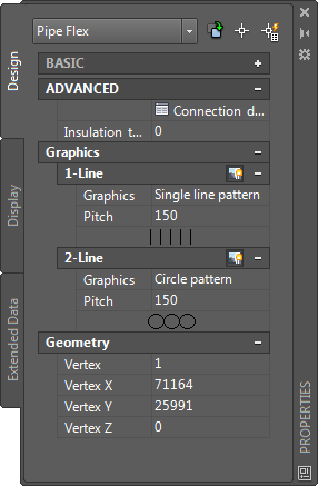 Defines the properties on the Design tab of the Properties palette to use to modify the piping system.