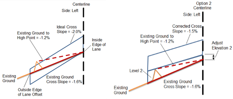 | Corrected Cross Slope | Corrected Cross Slope will be set between -1.5% and -2.5% cross slope |