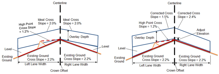 | Corrected Cross Slope | The Corrected Cross Slope will be adjusted to a value between -1.5% and -2.5% cross slope |