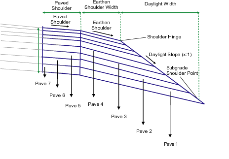 | Daylight Slope | Slope of the Foreslope of the shoulder, which extends from the Shoulder Hinge Point to the Subgrade Shoulder Point | Slope | 2: 1 |