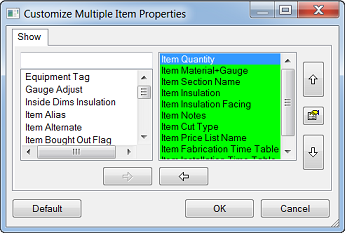 When the Multiple Item Property option is selected, the right pane of the Customize Multiple Item Properties dialog displays with a green background, as shown below.