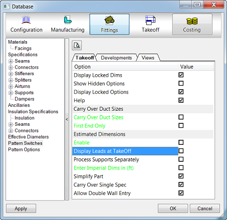 - Carry Over Duct Sizes: This allows the next item entered in estimating to inherit one dimension from the previous entered part.
