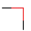 Min. Angle: Determines the minimum angle at which the corner style will be applied. The value entered defines the angle of change that the torch must make to go round the corner. In the diagram, the torch is travelling from left to right along the bottom and then alters direction to travel upwards from right to left, with the angle of change depicted by the arc.