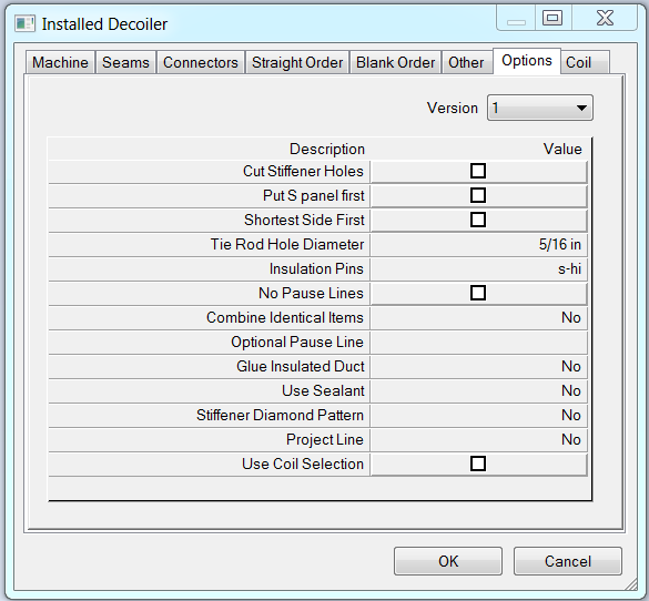 A blank Installed Decoiler dialog displays, unless a previous decoiler has been installed.