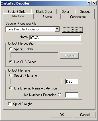 The following procedure below describes how to set up the Iowa decoiler machine and generate the .DEC file that the Iowa controller can read.