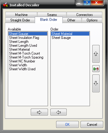 In the Straight Order Tab we can specify the Order that the Decoiled Straights are put through on the DEC File. By default this is set to sort the Straights by Material and Gauge.