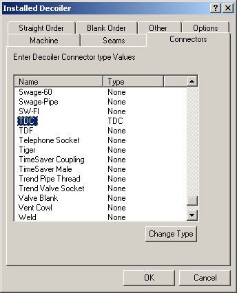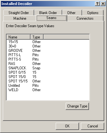 Double Clicking on a seam in the list will allow you to change the Seam to the seams supported by the decoiler unit.
