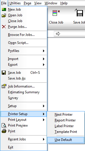 To quickly default all printers to the same printer, selecting the Use Default option from the menu assigns all layouts to the Windows default printer.
