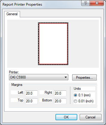 When you select a printer, the Report Printer Properties dialog displays. This lets you configure the Report Printer and select the appropriate printer to be used.