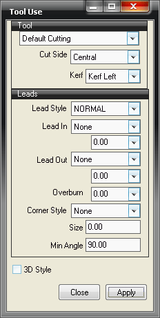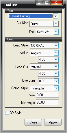 Kerf: Relates to the thickness of the torch and can be set to Kerf Left, Kerf Right or Kerf Off.