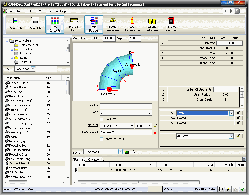 - Now, when you come to enter an item which can have center-line input (such as the segment bend), the quick takeoff screen will display this new item field: