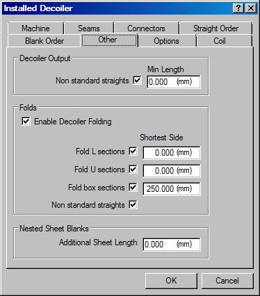 This is primarily used to control the folding options for the various duct section types. For the Forstner decoiler, the box sections must be at least 250mm to allow the former to create the duct section.