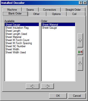 If the decoiler is being used to cut sheet blanks for use on a cutting machine, this tab controls the order in which the sheet blanks will be output in the ASCII file.