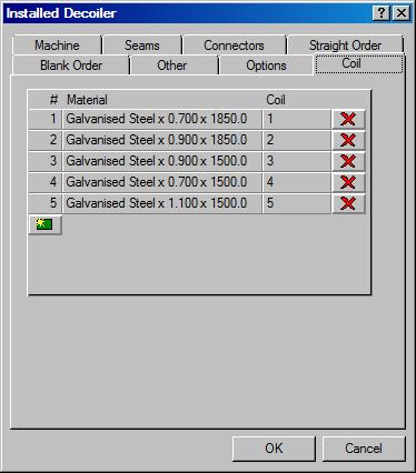 This decoiler post processor supports the new Coil allocation tab. Use the Coil tab to allocate coil numbers to the materials that will be used with the decoiler.