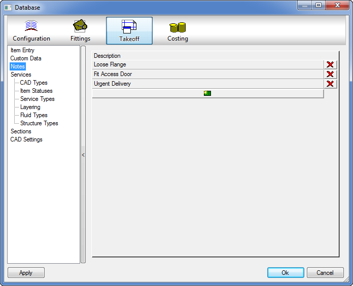 In the Fabrication products, the Notes feature lets you enter lines of text that can be used as notes. These notes can be assigned to items as they are accepted into jobs.