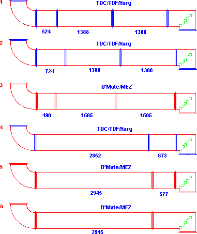 In the diagram above, (1) & (2) both use standard straights made from a 1500mm coil. The connector used, TDC/TDF, requires metal to be turned up to produce the flange. The effective straight length is reduced to 1388mm.