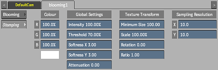 The Blooming menu is divided into two tabs, each with its own type of blooming effect, which can work independantly, or in combination with each other.
