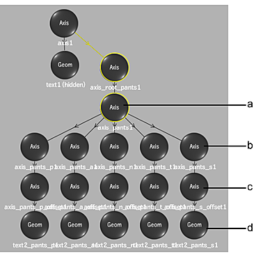 Rather than create a separate pivot point for each letter, you can separate words or sentences so that each letter can be individually manipulated by its own axis in the schematic.