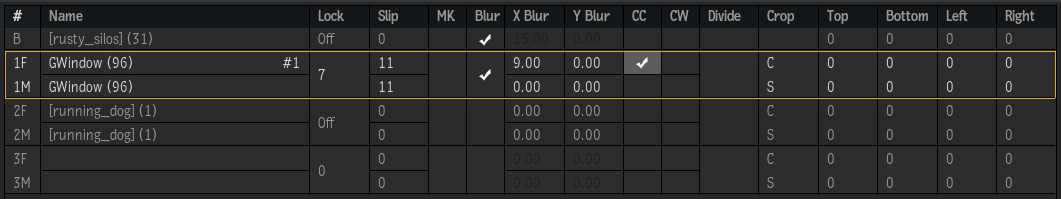 If you applied a blur type other than Gaussian, notice that the X and Y blur fields are not editable, and display as black. If you switch to a Gaussian blur type in the Blur editor, and return to Action, you are able to use the X and Y blur fields in the Media list (they display as white).