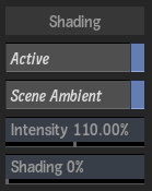 - Displays the shading level of the default ambient lighting in the Action scene. Available when Scene Ambient is enabled. Editable.