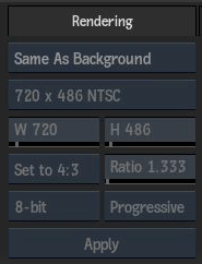 Note: If you do not change the Resolution settings, rendered results and camera settings default to the values set for the current project (set when you created a new project).