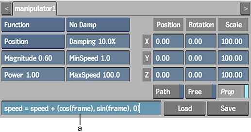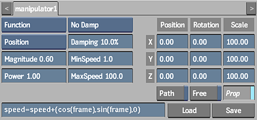 Select Function to specify your own mathematical expressions to be used as a particle manipulator. You can use the channels from the Particle Manipulator and Particle Generator menus in your expressions, as well as arithmetic operations, mathematical conventions, functions, and constants.