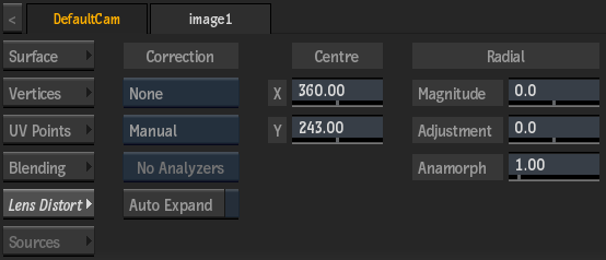 - Displays the ratio of radial distortion or rectification along the X or Y axis. Editable.