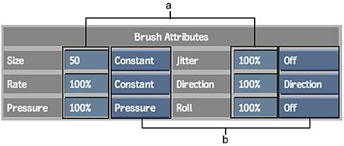 (a) Brush Attribute fields (b) Attribute Mode controls