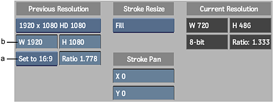 You can set scaling options for brush strokes associated with the Paint Node. By specifying the previous resolution of an input clip before it was resized, the brush strokes applied to the clip can also be scaled based on these settings.