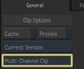 Where you are in the Flame Assist defines what you can do with a multi-channel clip. As in MediaHub, the Multi icon identifies multi-channel clips, although you cannot expand the channels.